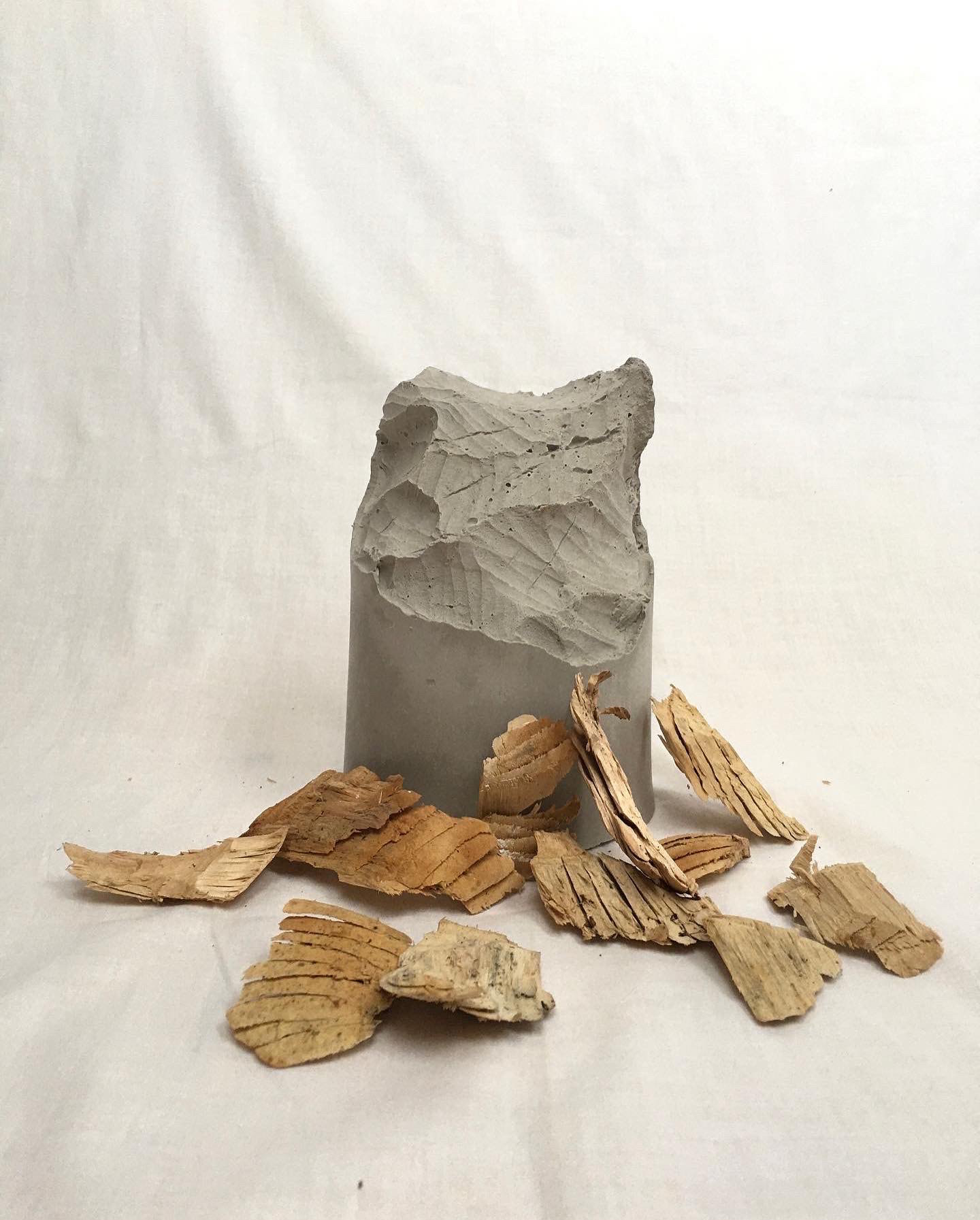I made a few of these sculptures in 2020 after stumbling through a forest ravished by beavers and taking an interest in the patterns left behind by their teeth. They’re a nice reminder of the monumental efforts these animals undertake, and the natural processes that have become peripheral to the gaze of us city-slickers (boo!). To honour these efforts I sought to create monuments to the beavers’ work by moulding and casting them in plaster (no doubt resolving their previously crushing need for recognition in the process). Rather ironically, the sum of my own efforts resulted in sculptures that would blend beautifully into the decor of a Scandi-chique living room full of subtle neutrals and dreamy pastels. Quite far removed then from the dirt, grit and honesty of the natural scene I had intended to capture. Untitled, plaster cast in silicone mould, 2020